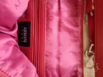 Borsa con cintura a tracolla, color fucsia, molto danneggiata sui manici, ecopelle che tende a frantumarsi