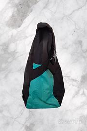 -Lacci integrati che permettono di convertire la tracolla in una pratica sacca da bici, agganciabile lateralmente al portapacchi o al manubrio.