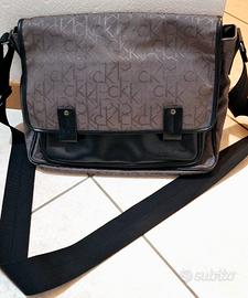 Vendo borsa a tracolla unisex Calvin Klein originale, modello messenger, colore marrone/grigio con monogram CK e dettagli in similpelle nera.