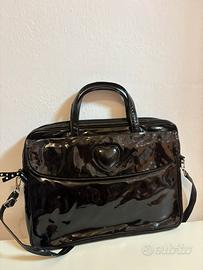 Borsa a tracolla marca Camonilla, ideale anche per pc in quanto ha uno strato imbottito all’interno. Color nero lucido.