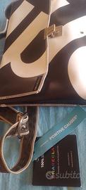 Una borsa a tracolla/ cartella anticonformista, realizzata con cartelloni pubblicitari dismessi in pvc dalla grafica unica e originale. I soldi raccolti andranno in beneficenza al Ricircolo di Luserna San Giovanni.