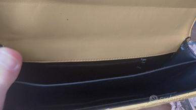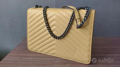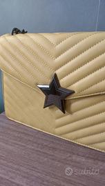 Borsa in colore giallo, similpelle, nessun segno o difetto, motivo trapuntata con stella sul fronte, interno foderato in cotone nero, con tasca con zip e tasca per cellulare, chiusura con bottone automatico. dimensioni cm 29 x 21 x 7 profondità, ottime condizioni