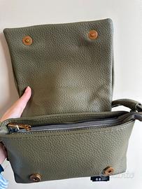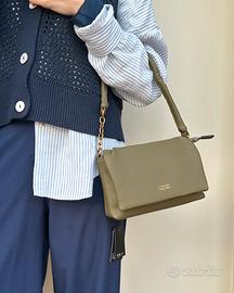 Vendo borsa a tracolla Coveri Collection originale, colore verde oliva (verde militare scuro), ideale per ogni stagione e occasione. L'oggetto è NUOVO, mai usato e completo di etichetta originale, come visibile nelle foto.
