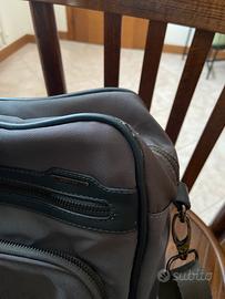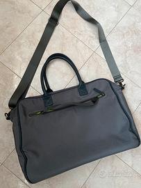 Vendo borsa da lavoro (marca Carpisa) anche per computer portatile. Colore: grigio scuro/antracite fuori e verde brillante all'interno. Ha 2 maniglie corte + il laccio per uso a tracolla. Ha: - 2 tasche con zip esterne davanti - 1 tasca con zip esterna dietro - 1 tasca con zip interna - 1 tasca con velcro interna - 5 slot portapenne - 2 retine di contenimento Ha un piccolo difetto di usura sull’angolo di gomma, come da foto.