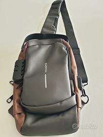 Borsa a tracolla da uomo. In ottime condizioni. Usata pochissimo. Misure 32 x 19 x 8 cm. Impermeabile, regolabile, con porta ricarica Usb, con blocco password.
