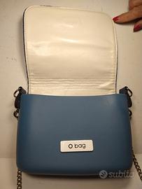 O bag - Borsa a tracolla donna colore azzurro. Con tracolla a catenella oro. Chiusura con magnete. Dimensioni: larga 19 cm, alta 14 cm, profonda 7 cm. Usata, in ottime condizioni