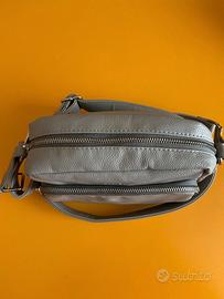 Borsa a tracolla "Carpisa", colore grigio, in similpelle. 1 cerniera e 1 tasca interna. 2 cerniere esterne. Nuova mai usata.