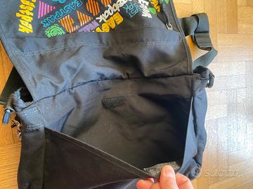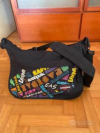 Borsa a tracolla Eastpak con tasca sul davanti con cerniera, tasca sul retro chiusura in velcro e interno tasca con cerniera e due tasche sul davanti. Dimensioni: larghezza cm. 45 altezza cm. 30