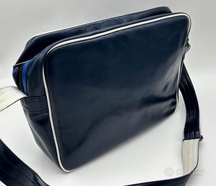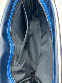 Borsa a tracolla Fred Perry in pelle bicolore blu misure cm. 38 x cm. 28 x cm. 10 dimensione massima laptop 15”