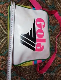 Borsa a tracolla regolabile, marca Gola, grandi dimensioni, molto capiente, in ecopelle multicolore chiusura a zip, tasca interna, foderata in raso nero. Usata un paio di volte, come nuova, ma leggermente ingiallita in un punto, come si vede da foto.
