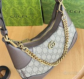 Codice articolo: 731817 Monogram Dimensioni: 25 x 19 x 7 cm La nuova borsa a mezzaluna hobo di Gucci è arrivata! È dotata di 3 tracolle, che consentono diverse opzioni di trasporto: a spalla, a tracolla o sotto il braccio. Il colore a tinta unita è estremamente versatile e dona un tocco di sofisticatezza.