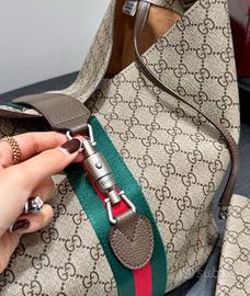 Tela Supreme con fettuccia rossa e verde: un look retrò ma moderno! La tracolla regolabile permette di indossarla sia a spalla che a tracolla, ed è dotata di una pochette staccabile per praticità e stile. Ispirata al classico design del 1961, la sua silhouette elegante e gli accessori moderni la rendono facile da abbinare sia al lavoro che al tempo libero, una popolare collezione Gucci! Dimensioni: 30 cm