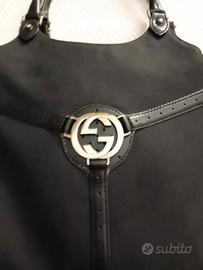 Borsa a tracolla Hobo GUCCI in tela nera e finiture in pelle nera. Interno in tessuto nero con logo Gucci Borsa in ottime condizioni.