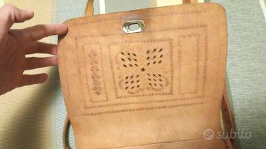 Borsa a tracolla di cuoio misure in foto con 2 comode tasche interne. Come nuova in quanto regalo non gradito. Non è mai stata usata. Prodotto artigianale acquistato a Madrid Spagna.