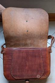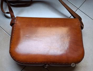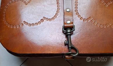 Borsa a tracolla in cuoio, chiusura con moschettone.