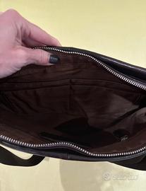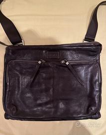 Borsa a tracolla in pelle, color testa di moro, marca Full Time (made in Italy), con sacca antipolvere.