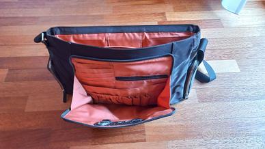 Pregiata borsa a tracolla in pelle, pratica per studenti o lavoratori, comoda, molto capiente e dotata di numerose tasche interne ed esterne. È usata quindi leggermente consumata, ma è ancora in condizioni ottimali.