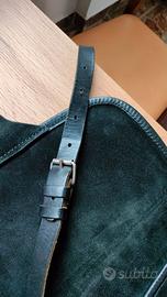Splendida borsa a tracolla interamente in vera pelle, realizzata artigianalmente dalla selleria di Lamberto Bortolozzi, realtà nota per la produzione di borse e articoli interamente in cuoio lavorati secondo tradizione.