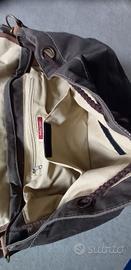una borsa a tracolla molto grande, può essere utilizzata anche come zaino per le varie tasche che ha sia esterne che interne. la patella ha un effetto cavallino. molto bella più dal vivo che in foto.