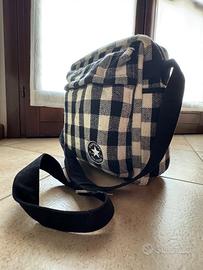 Vendo borsa di cotone Converse All Star, scozzese bianca e nera con tracolla regolabile in velluto.