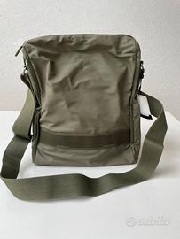 Borsa nuova mai usata, a tracolla regolabile, in materiale lavabile colore verde oliva