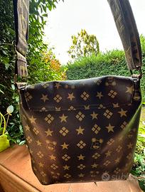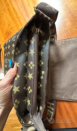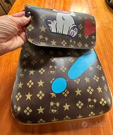 Borsa a tracolla con un design iconico ispirato ai pattern più famosi Dettagli dell'articolo: • Marca: Mama Quevo • Stile: Messenger/Postino con patta frontale. • Design: Base marrone con stampa monogram (stelle e rombi), decorata con patch colorate. • Interno: Foderato in tessuto marrone, scomparto principale spazioso con tasca interna chiusa da zip per i piccoli oggetti. • Chiusura: Zip superiore sotto la patta per la massima sicurezza. • Tracolla: Larga, in tessuto regolabile, molto comoda da indossare. #BorsaDonna #Tracolla #MamaQuevo #PopArt #UrbanStyle #VintageStyle #CrossbodyBag #ModaDonna #AccessoriDonna #Streetwear
