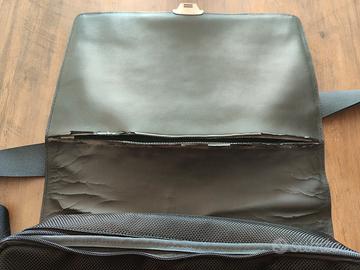 Vendo borsa a tracolla originale Mandarina Duck, colore nero, con tracolla regolabile e numerosi scomparti interni per documenti, PC portatile o uso quotidiano.