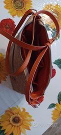 Borsetta con tracolla marca carpisa, usata ma senza segni di usura né problemi alle cuciture. Taglia media, colore arancione e beige. Altezza 26cm, larghezza 30cm, profondità 10cm