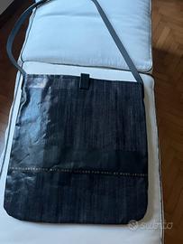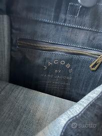 Borsa a tracolla m 40 x37 in tessuto denim plastificato con tracolle in cuoio tasca interna con cerniera marchio Jacobs