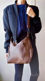 Morbida e multiuso, ha la spalla removibile e una tracolla che si regola
