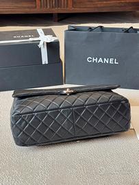 Borsa Chanel CF Large Maxi in pelle di agnello nera e oro Così cool, versatile e spaziosa. Davvero fantastica! Dimensioni: 40 cm x 25 cm