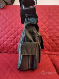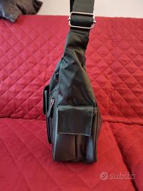 Borsa con tracolla regolabile, colore verde militare. Numerose tasche esterne ed interne.