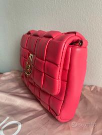 Borsa di colore rosa acceso/fucsia, con logo Liu-Jo in oro sulla parte anteriore, motivo intrecciato su entrambi i lati della borsa. Utilizzabile a tracolla regolabile, di media grandezza, abbastanza capiente. Utilizzata in rarissime occasioni.