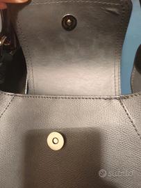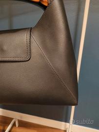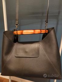 Borsa nera, capiente, 35 x 27, con tracolla e manico rigido, artigianale. Nuovissima, mai usata. Possibile ritiro a mano (a Milano o a Cernusco)
