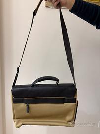 Vendo borsa a tracolla nuova mai usata, realizzata in vera pelle nera abbinata a tessuto beige resistente. Dotata di: