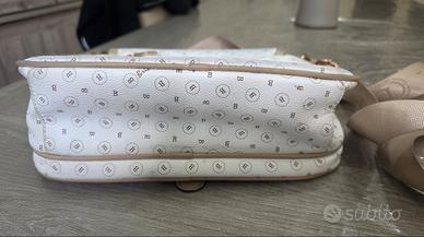 Borsa a tracolla di marca Briciole con un elegante motivo monogramma.