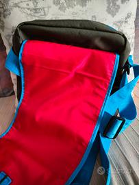 Vendo Borsa/Zaino a tracolla originale Paul Frank, condizioni perfette,come nuova, in tessuto resistente colore verde militare bordi e tracolla azzurro, interno rosso.