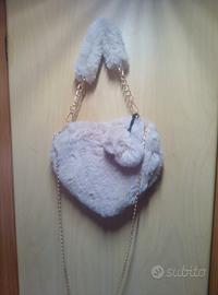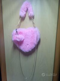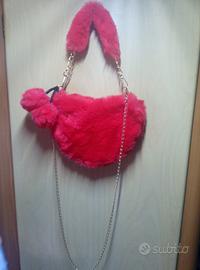 Ideale per regalo di San Valentino , Compleanno e Natale ,borse a tracolla con pompon pelosa a forma di cuore vari colori disponibili solo quelle in foto , misura 23,4 x 20,3 ( lunghezza x altezza)