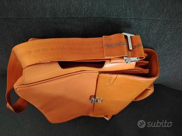 Borsa a tracolla Piquadro - Arancione - Porta PC / bellissima borsa a tracolla originale Piquadro in un vivace color arancione, perfetta per l’ufficio, l’università o come borsa da lavoro quotidiana. Il design combina eleganza e praticità, tipico del brand. Caratteristiche principali: Materiale: Mix di pelle di alta qualità e tessuto tecnico resistente. Colore: Arancione iconico con finiture in metallo satinato. Organizzazione: Ampio scomparto principale protetto da patta con chiusura a scatto. Dotata di diverse tasche interne per organizzare penne, smartphone e accessori. Trasporto: Comoda maniglia superiore e tracolla regolabile logata Piquadro per il massimo comfort.