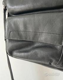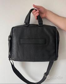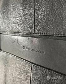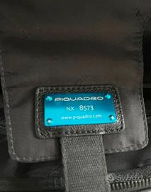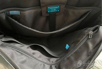 Borsa con tracolla da uomo della Piquadro, in pelle nera e piccoli dettagli interni blu. Ideale per ufficio. Interni con svariate tasche, 3 tasche esterne molto capienti. Ottime condizioni, usata pochissimo