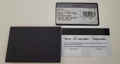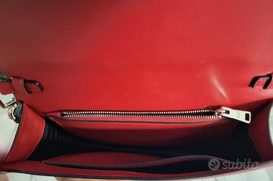 Borsa a tracolla Prada Elektra in pelle nera e rossa, inserti in metallo argentato. Chiusura con patta, fodera interna in tela siglata nero.