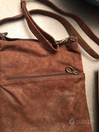 Vendo borsa a tracolla , usata, unisex , scamosciata marrone con tasca