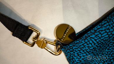 Borsa originale Borbonese a tracolla modello 934431296, colore blu/nero, con sacca antipolvere. Dimensioni lunghezza 24cm, altezza 18cm, profondità 4cm.