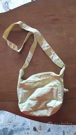 Borsa a tracolla regolabile stile Kipling, colore verde chiaro. Quattro tasche esterne e due interne. Misure 20x15x7 circa.