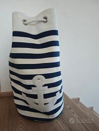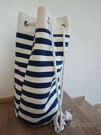 borsa a tracolla stile marinaio nuova. si può usare come borsa per la spiaggia, borsa porta giochi ma anche come porta biancheria. misure altezza 61 circonferenza 102