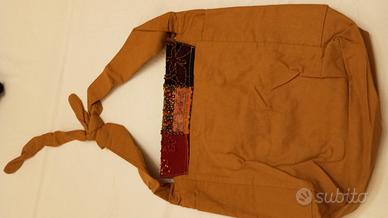 Borsa a tracolla stile orientale con inserti e ricami, mai usata