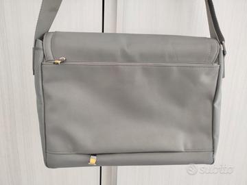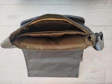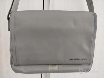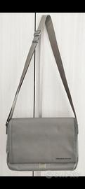 Borsa a tracolla The Bridge Wayfarer grigia. Logo The Bridge Wayfarer in metallo applicato lateralmente sulla patta frontale. Triplo scomparto interno. Doppia tasca con zip frontale. Chiusura con zip in metallo. Larghezza 40 cm, Altezza 29 cm, Profondità 11 cm. Lievi usure da utilizzo.