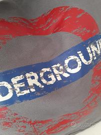 Borsa a tracolla Underground grigia con nome di brand in rosso, unisex,misure35x25.