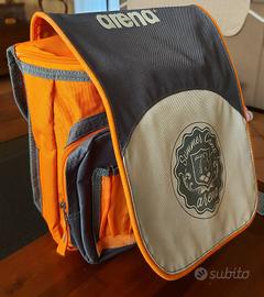 Borsa a tracolla Marchio Arena di colore arancio/tortora, utile sia per il tempo libero che da lavoro, ha molti spazi per tenere tutto organizzato,