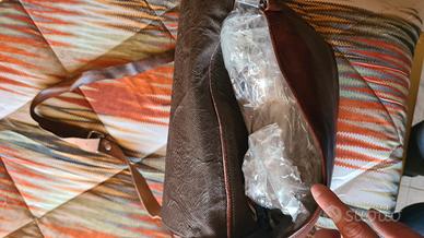 Vendo nuovissima Borsa a Tracollo, di cuoio, modello unisex, con bottone per chiusura. le dimensioni della borsa sono di circa 25 x 25.